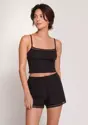 Koppla av med stil i GO RIBBED Shorts av supermjuk ribbad ekologisk bomull med en skir spetskant. Kombinera med matchande topp för lata dagar hemma.- Shorts med lös passform
