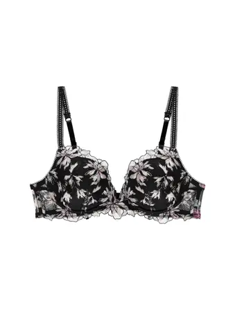 Denna bygelbehå kombinerar mjuk mesh med tryck och har ett vackert broderi på kuporna. Bandet under bysten är också tillverkat av mesh med tryck. Dekorativa axelband ger en elegant touch till designen.Artikel nr: 10225707 (7613113954073)